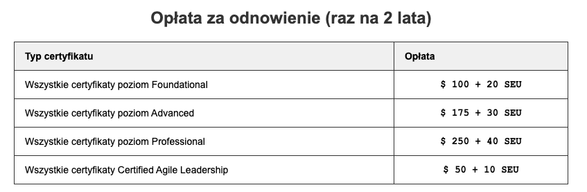 Certyfikat jaki uzyskasz od Scrum.org jest ważny dożywotnio i nie wymaga wykupywania przedłużenia jego ważności.